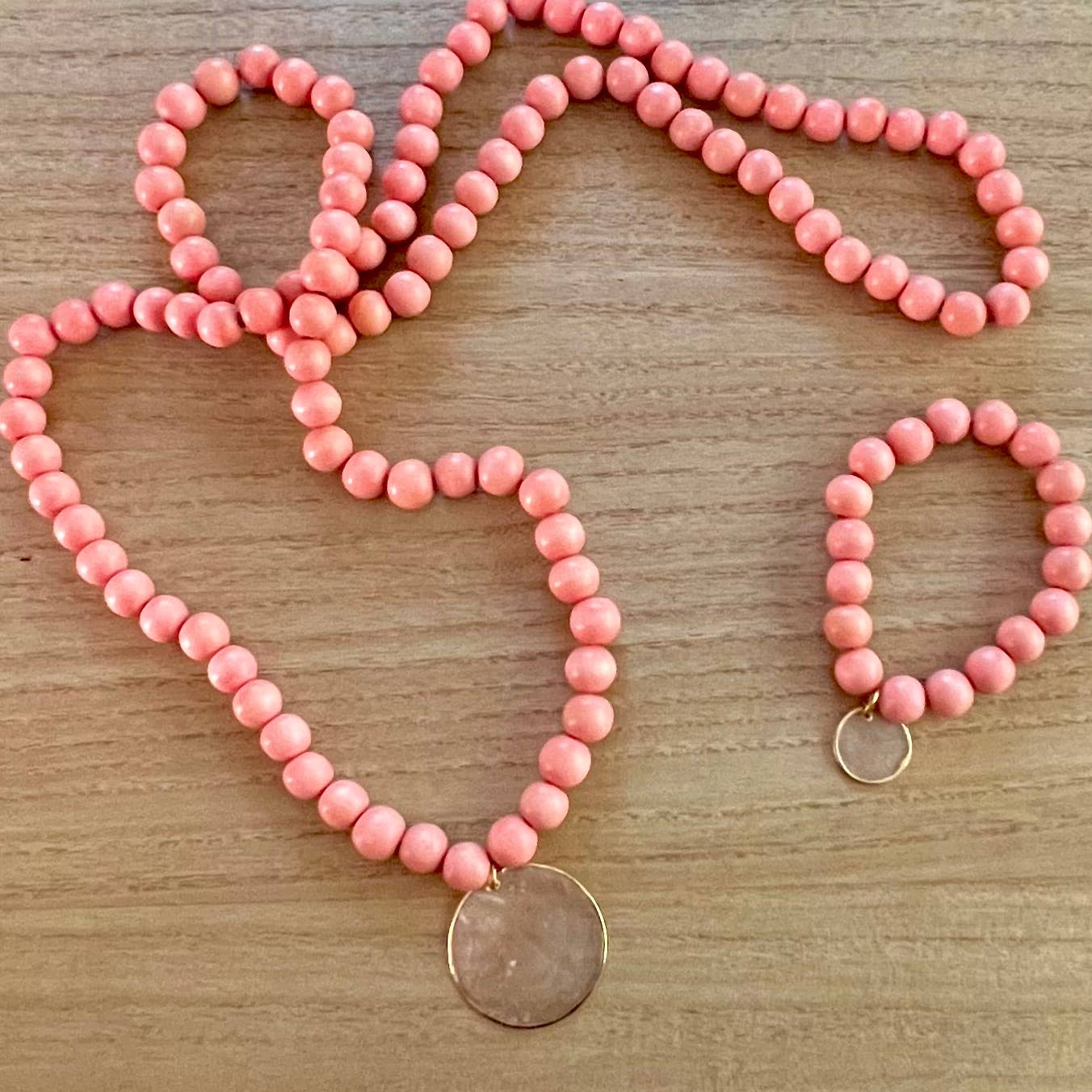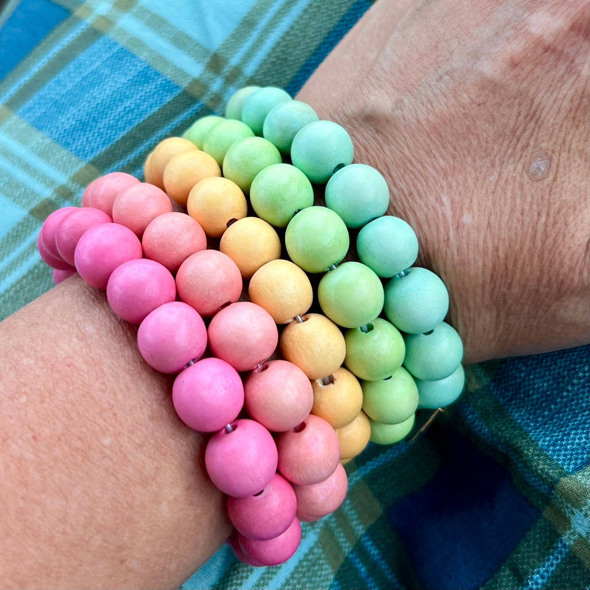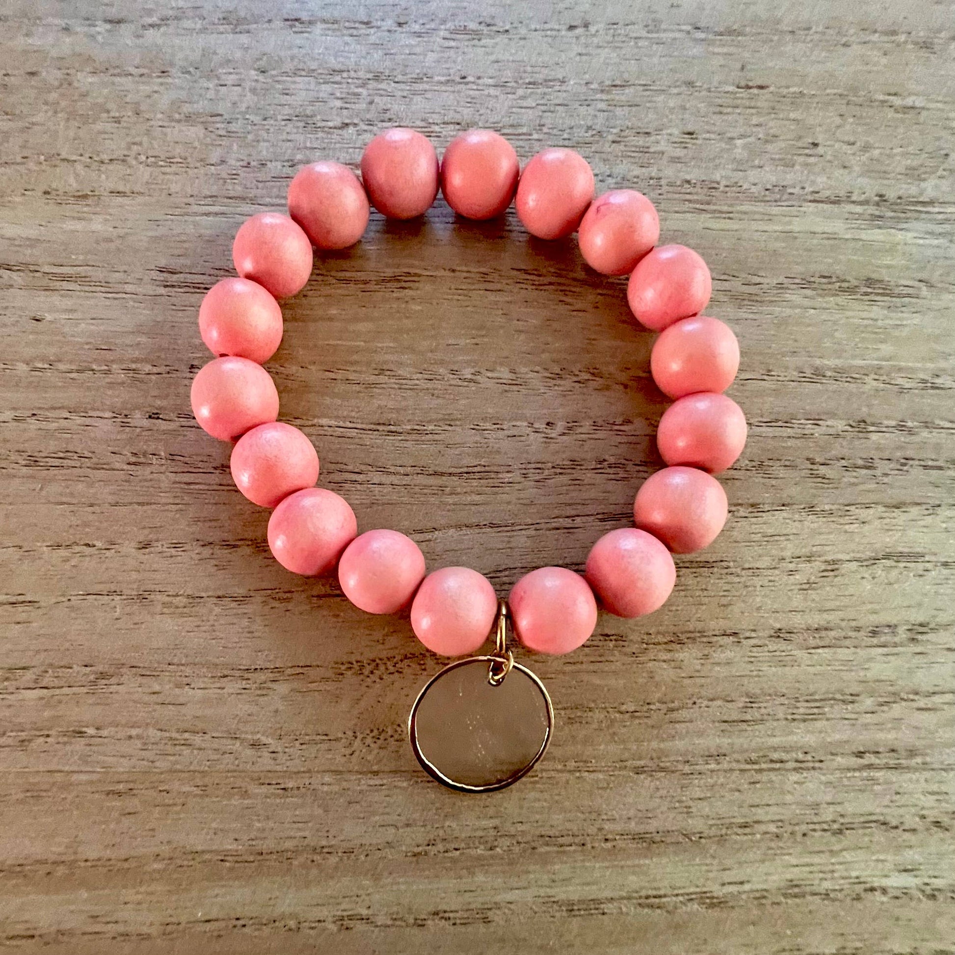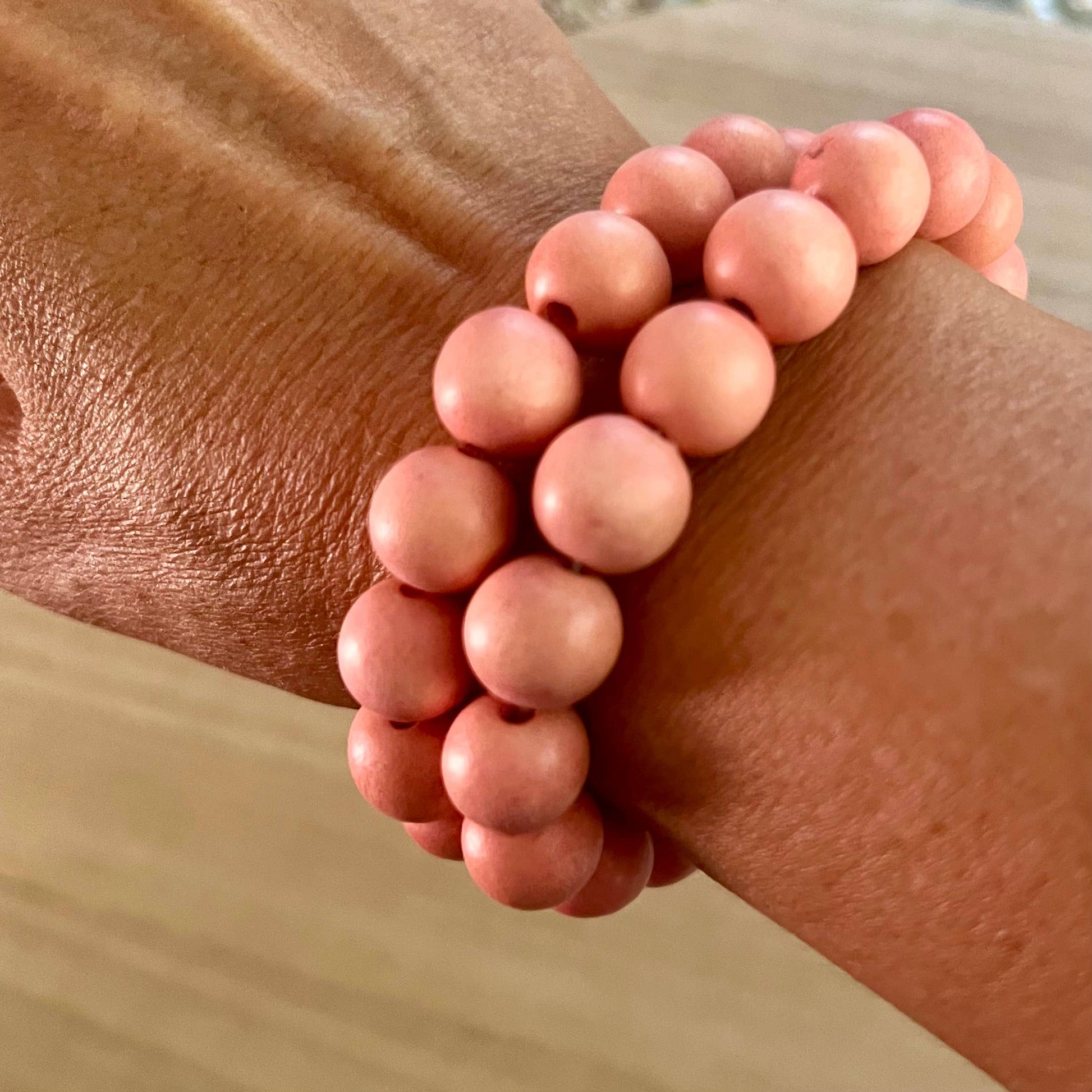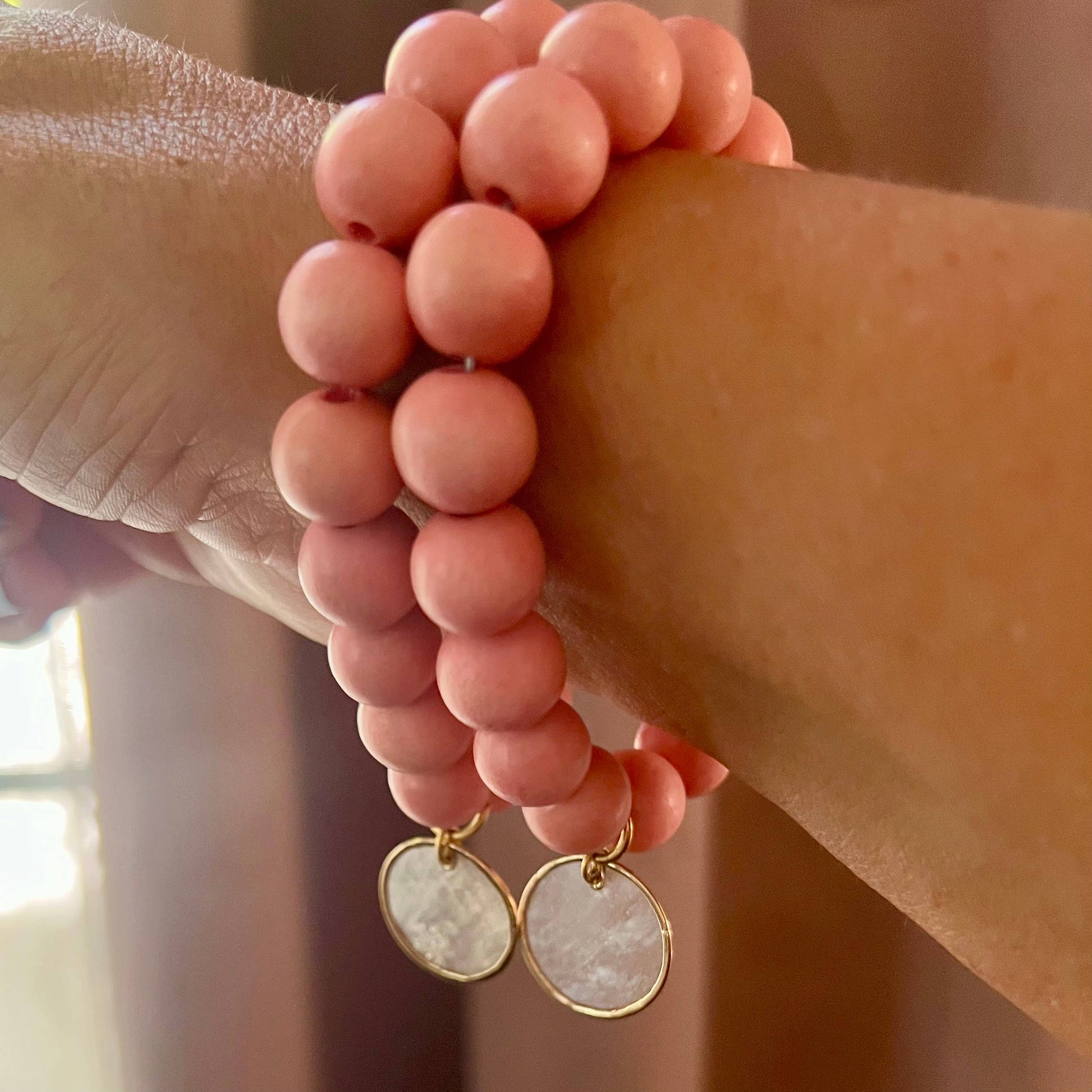 Nellie Pratt Artisan Jewelry - Charmed Life- wood shell beachy boho stretch bracelet: Light Pink