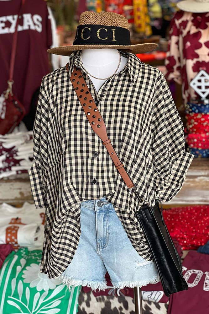 Plaid Print Button Up Oversize Blouse Shirt BBSP045